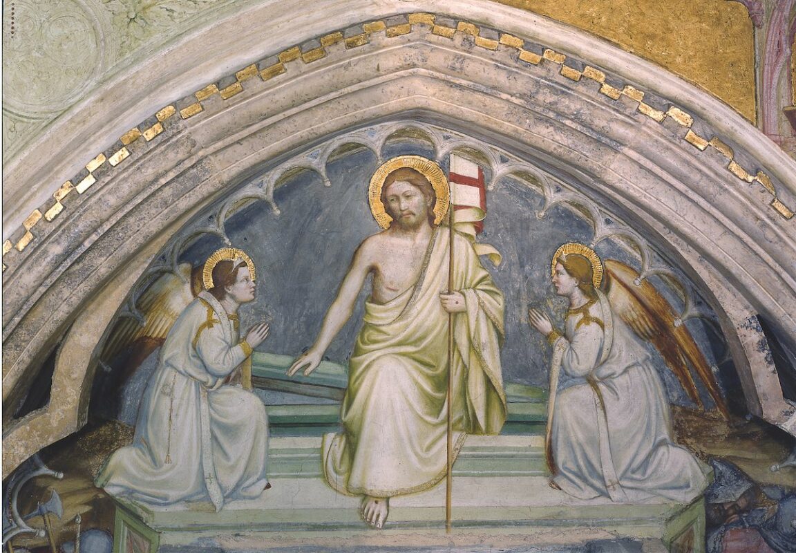 In alto: Altichiero da Zevio, Cristo Risorto, Cappella di San Giacomo, Basilica di Sant'Antonio, Padova.